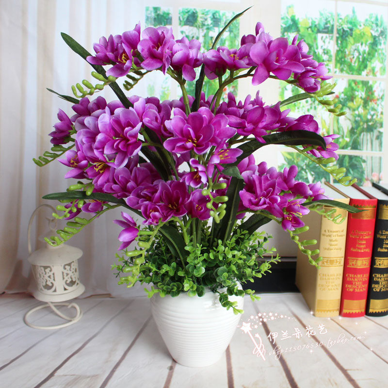包邮 香雪兰仿真花套装 欧式客厅装饰花摆放花假花干花塑料花绢花