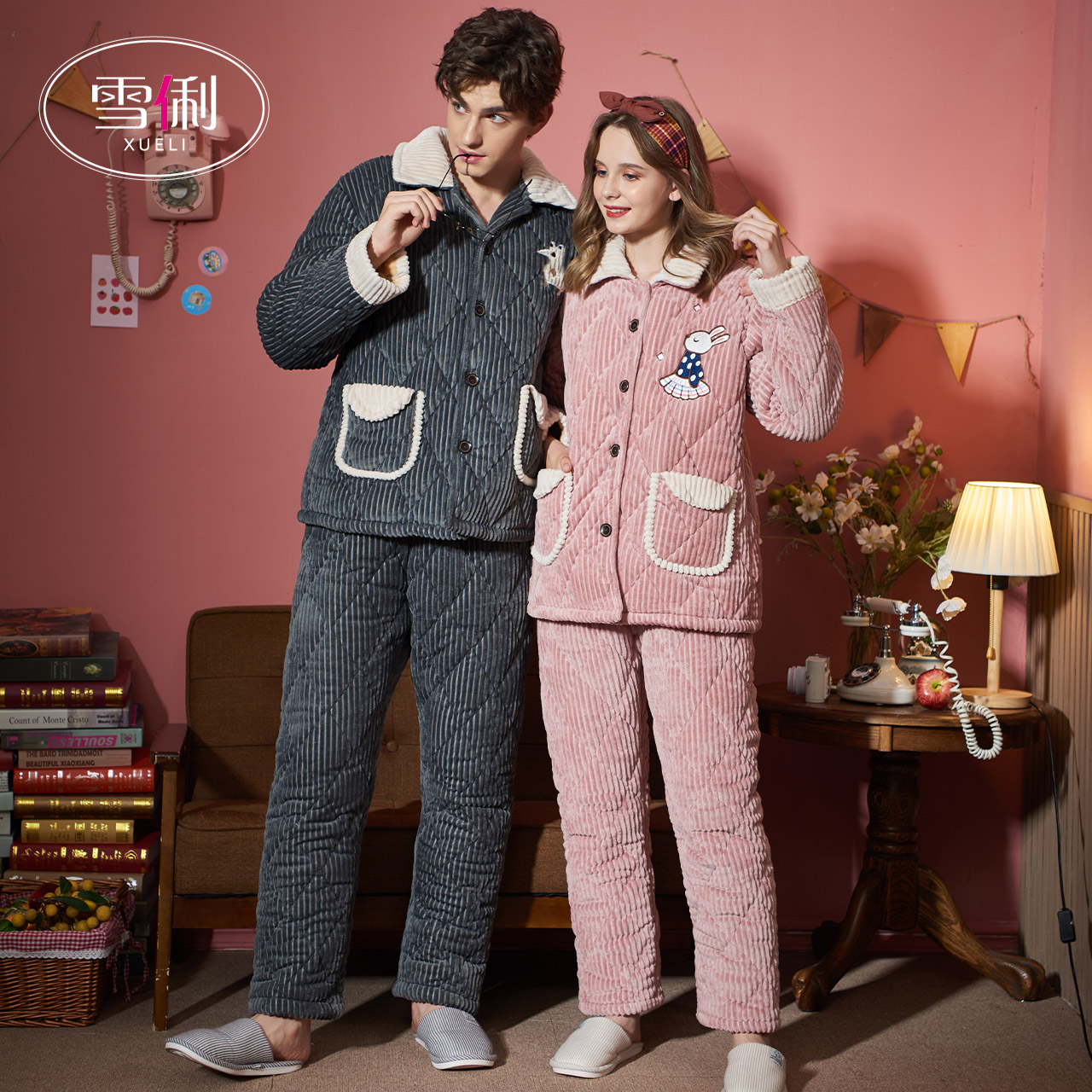 - 冬季 珊瑚绒 加厚 睡衣 男