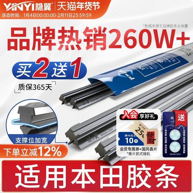 隐の翼适用本田思域CRV凌派飞度锋范雅阁缤智XRV型格雨刷雨刮胶条