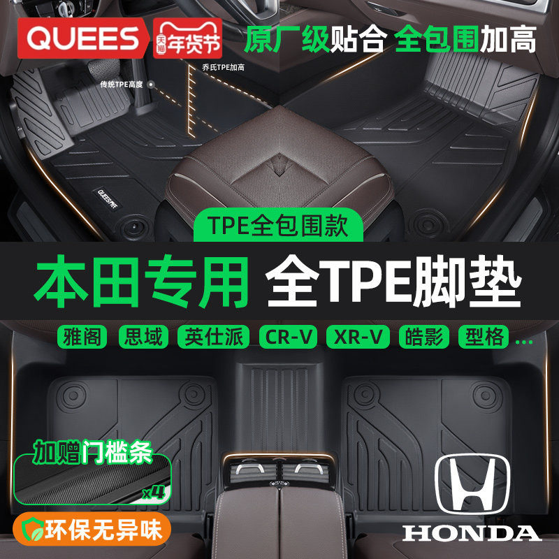 适用于本田雅阁CRV思域皓影XRV型格缤智英仕派TPE汽车脚垫全包围