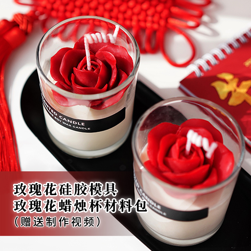 情人节玫瑰花硅胶模具食品级 DIY香薰蜡烛杯新手材料包送视频教程