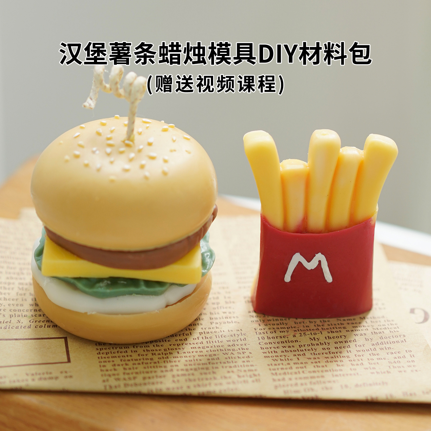 汉堡薯条香薰蜡烛模具 diy亲子团建自制香氛摆件材料包送视频教程