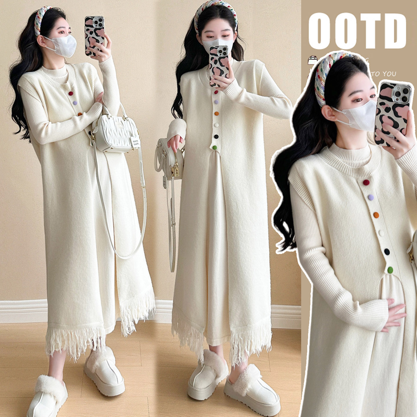 休闲针织孕妇装2025套装新款长袖百搭打底连衣裙宽松马甲裙两件套
