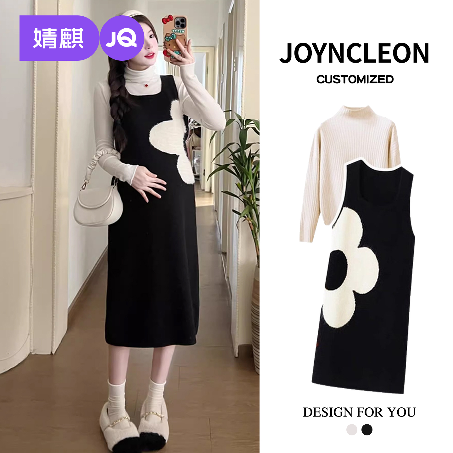 孕妇连衣裙时尚2025新款高领宽松针织打底长款毛衣裙两件套装秋冬