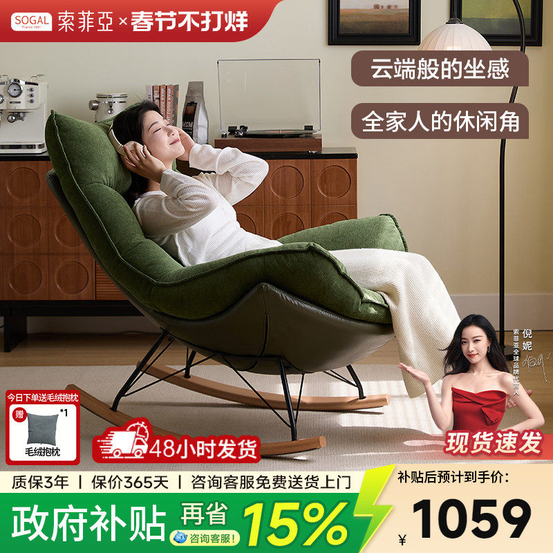 索菲亚单人摇摇椅客厅复古懒人沙发椅现代简约阳台休闲单椅A013