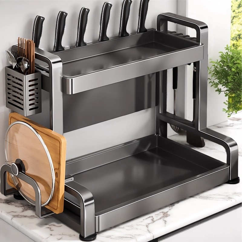 不锈钢刀架厨房置物架台面多功能刀具收纳架子家用筷子菜刀放置座