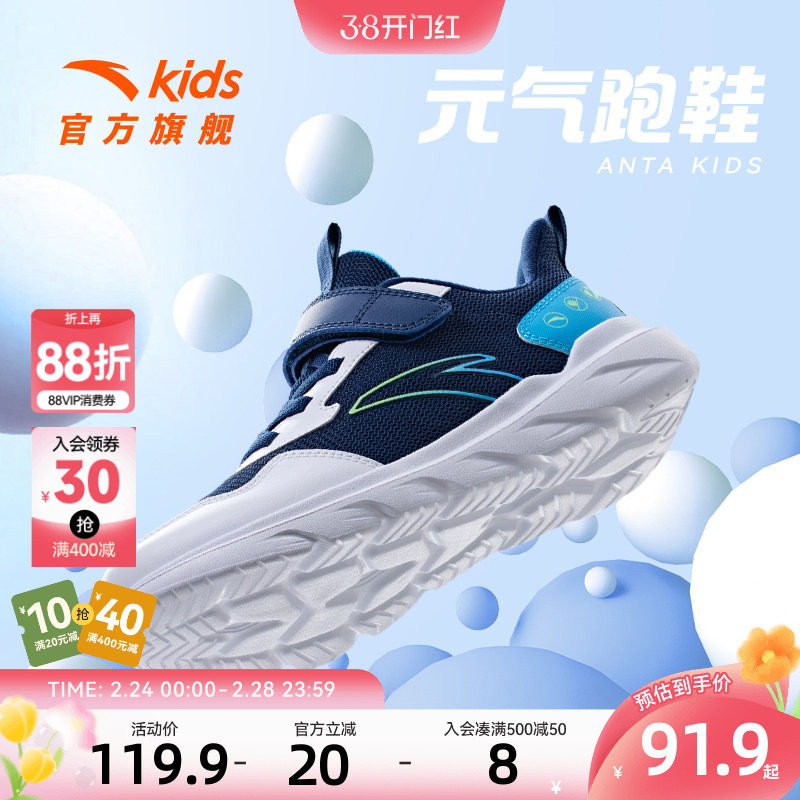 安踏儿童透网跑步鞋2025春夏季新款男童跑鞋男生小白鞋运动跑步鞋