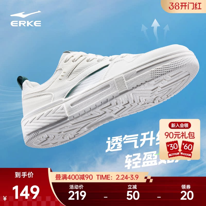 鸿星尔克男生小白鞋2026新款青少年白色休闲男鞋耐磨轻便运动板鞋