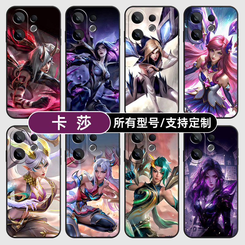 卡莎英雄联盟皮肤适用荣耀400pro300手机壳80SE90GT200玻璃硅胶外70PRO+来图定制60plus50S100畅玩30power20