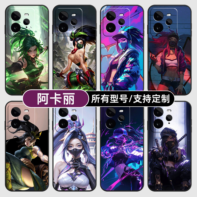 英雄联盟阿卡丽皮肤适用Realme真我GT7pro手机壳GTneo6SE5玻璃硅胶13来图12定制10S11保护30T20外9NEO3V60X7