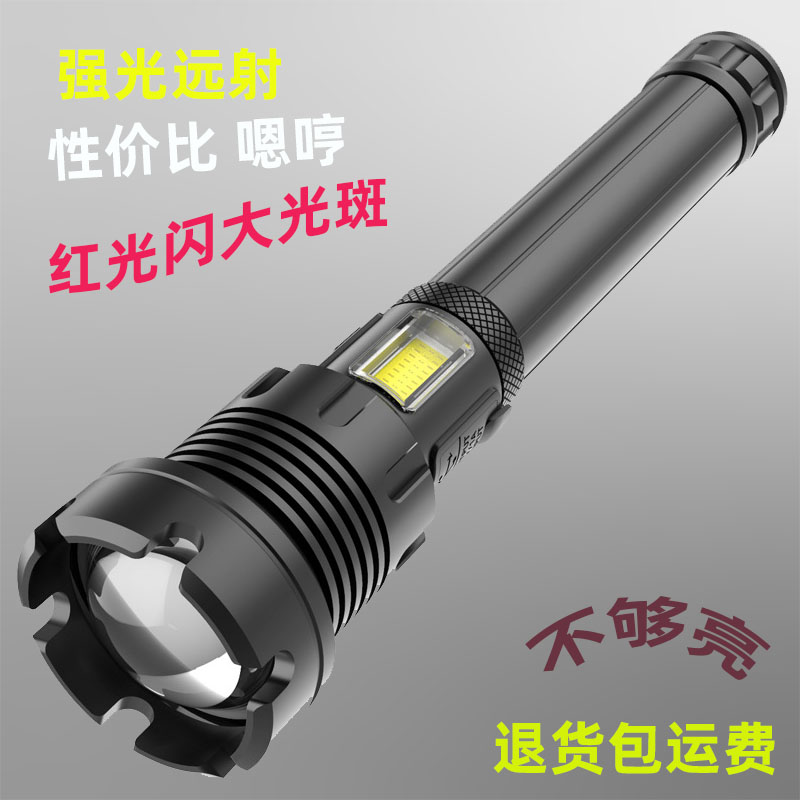 强光手电筒户外远射超亮led照明手电充电轻小便携长续航变焦调光
