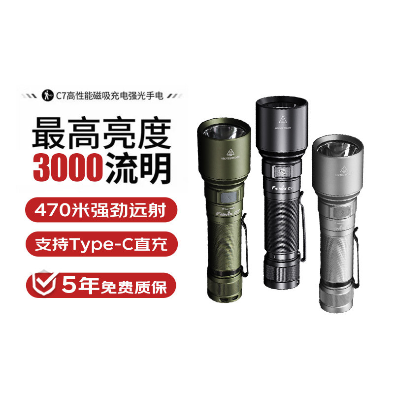 Fenix菲尼克斯C6 C7强光充电手电筒磁吸聚光远射便携防水户外探洞
