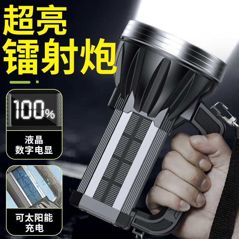 太阳能充电手电筒强光超亮户外远射大功率超长续航家用耐用手提灯