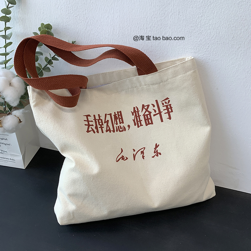 知足常乐文创帆布包包男女2025新款大容量中学生上课手提书包袋潮