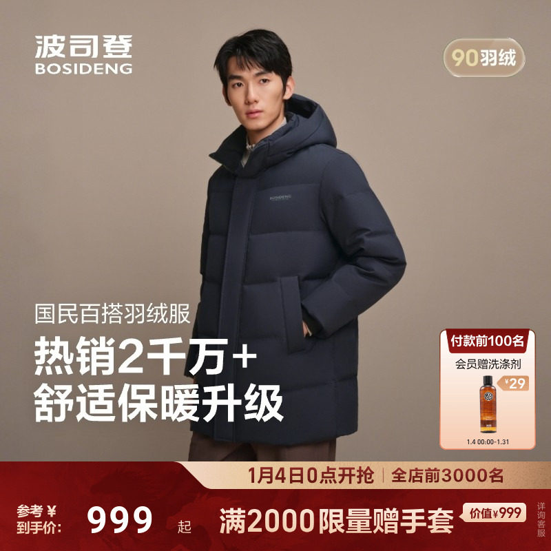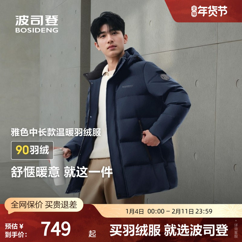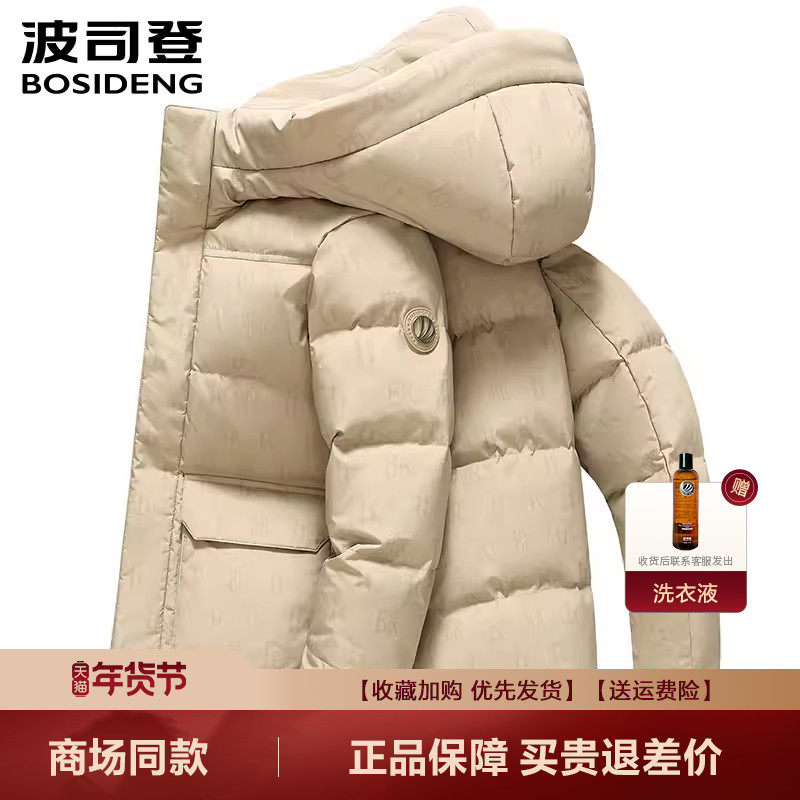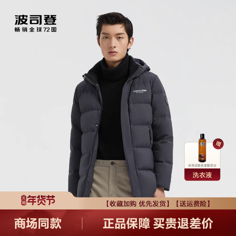 【经典热销】波司登25新款男士连帽羽绒服加厚中长款保暖百搭90绒