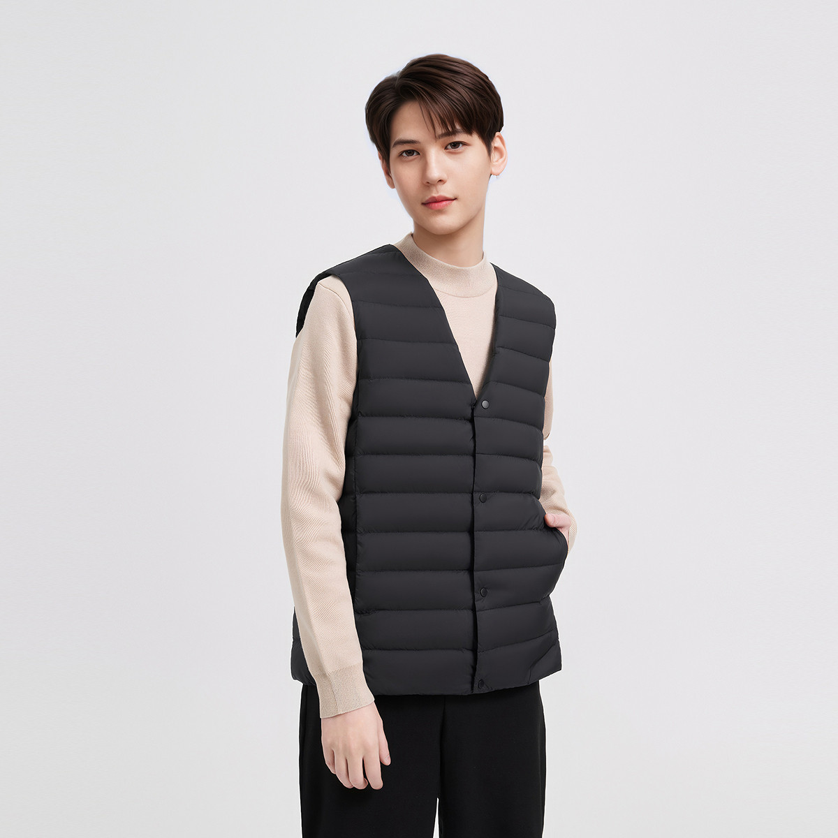 波司登25新款长袖轻薄羽绒服男士短款羽绒马甲羽绒内胆可V领便携