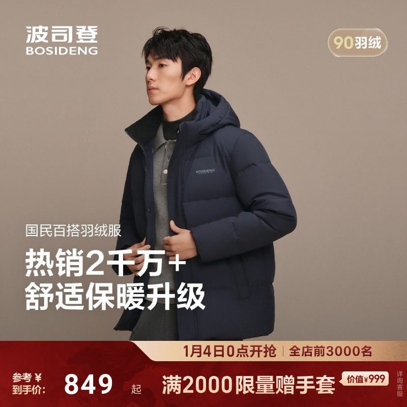 波司登奥莱25新款冬休闲百搭保暖短款连帽厚羽绒服男外套正品90绒