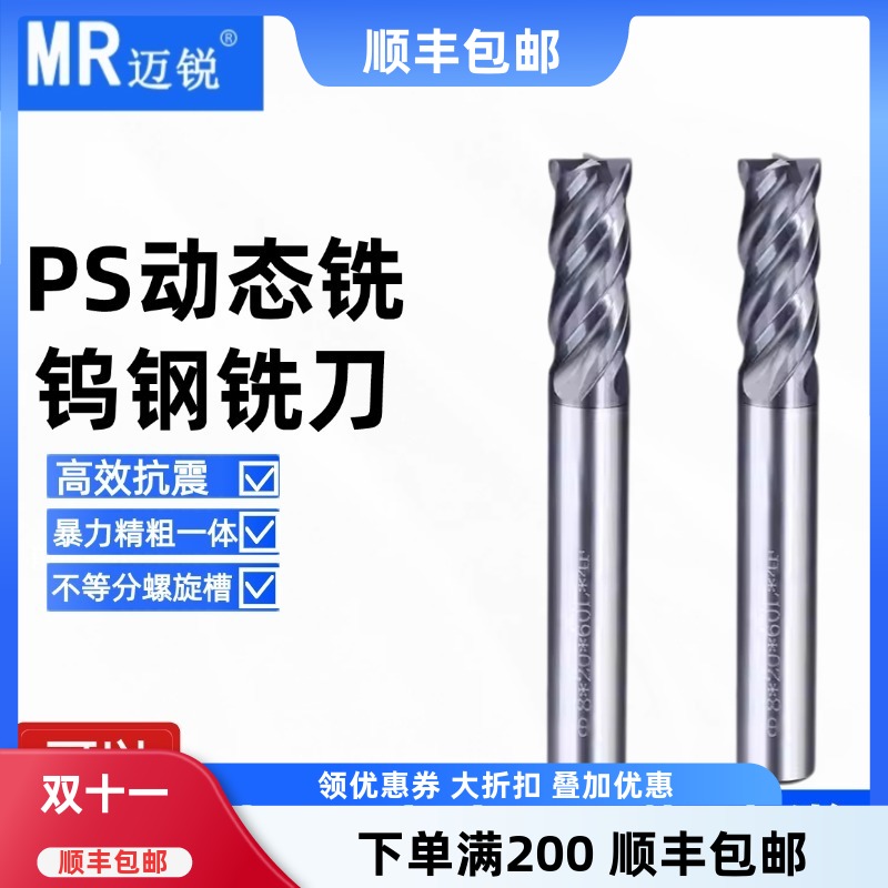 60°钨钢4刃铣刀不锈钢专用U型槽不等螺旋不等分PS高效动态刀具