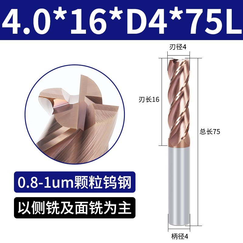 55度钨钢4刃铣刀古铜涂层整体合金加长平底L刀数控M1-20性价比高