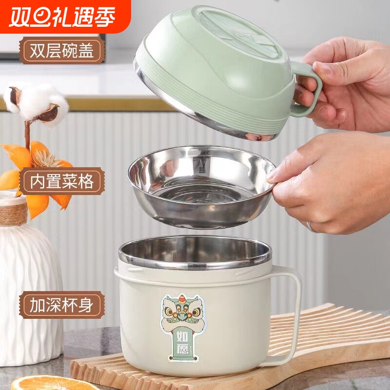 700ml大容量碗带盖316不锈钢儿童碗双层把手吃饭碗饭盒小学生专用