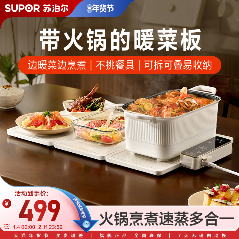 苏泊尔拼接暖菜板带火锅保温板热菜板家用圆形加热盘保温垫多功能