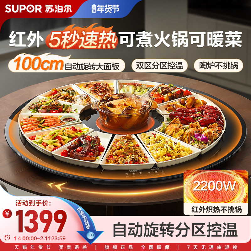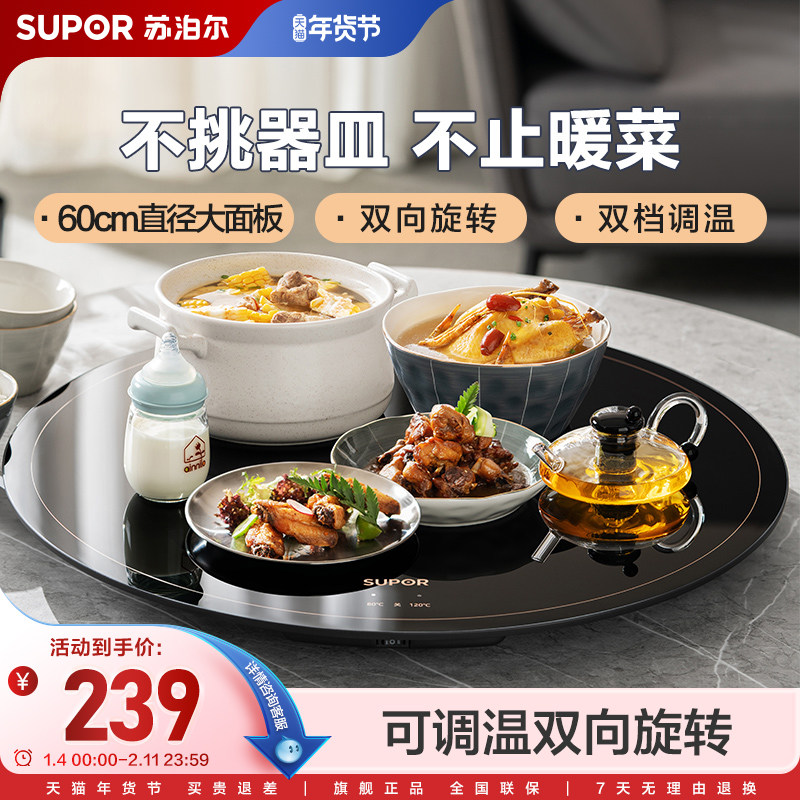 苏泊尔自动转盘暖菜板家用电陶炉热菜板多功能加热保温垫圆形餐桌
