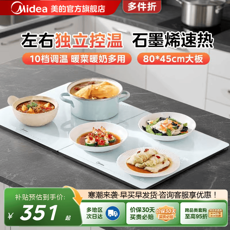 [多地次日达]美的暖菜板折叠式全域暖保温板热菜板家用加热餐垫