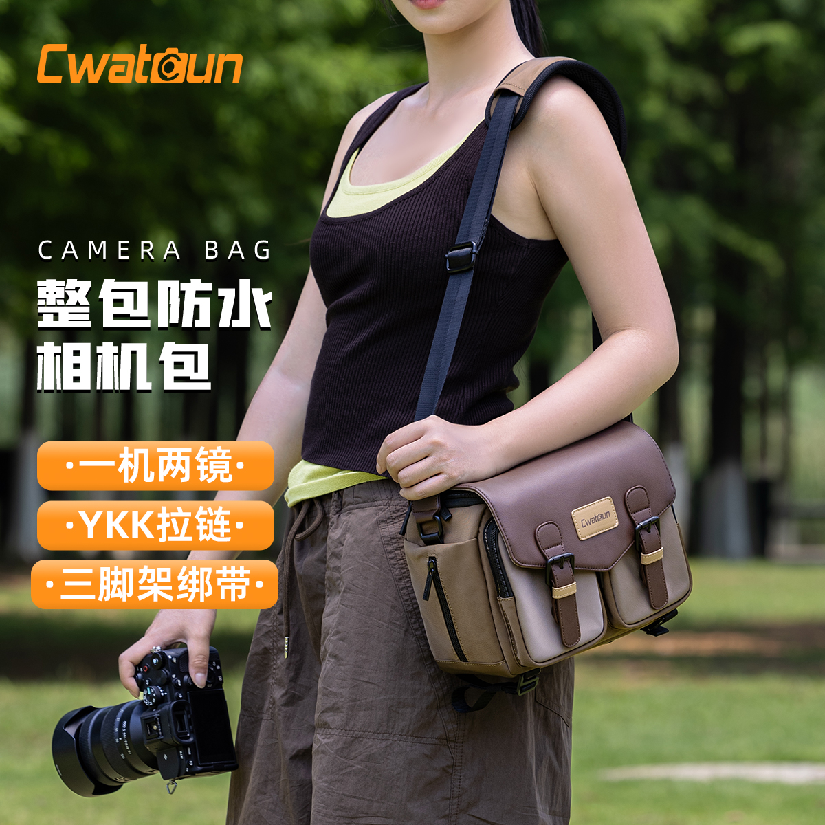 Cwatcun香港卡登单肩相机包男防水复古微单反ccd相机斜挎摄影包女轻便收纳包适用佳能R50富士微单xt4xs20尼康