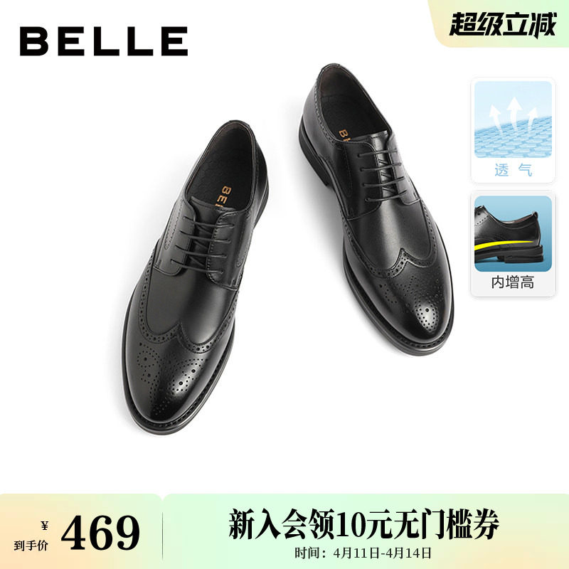 百丽男士商务正装真皮鞋男春季新款增高休闲德比新郎婚鞋B3GK3CM1