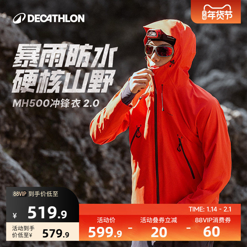 迪卡侬官方旗舰店硬壳MH500冲锋衣男女新款户外防风防水夹克外套