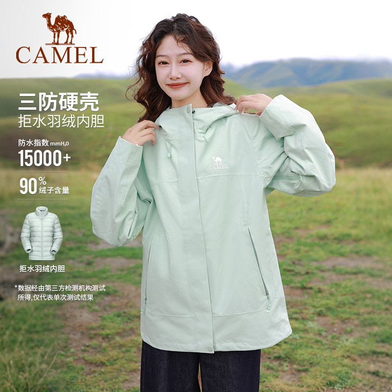骆驼三防冲锋衣男女三合一羽绒服内胆防风防水外套冬季保暖登山服