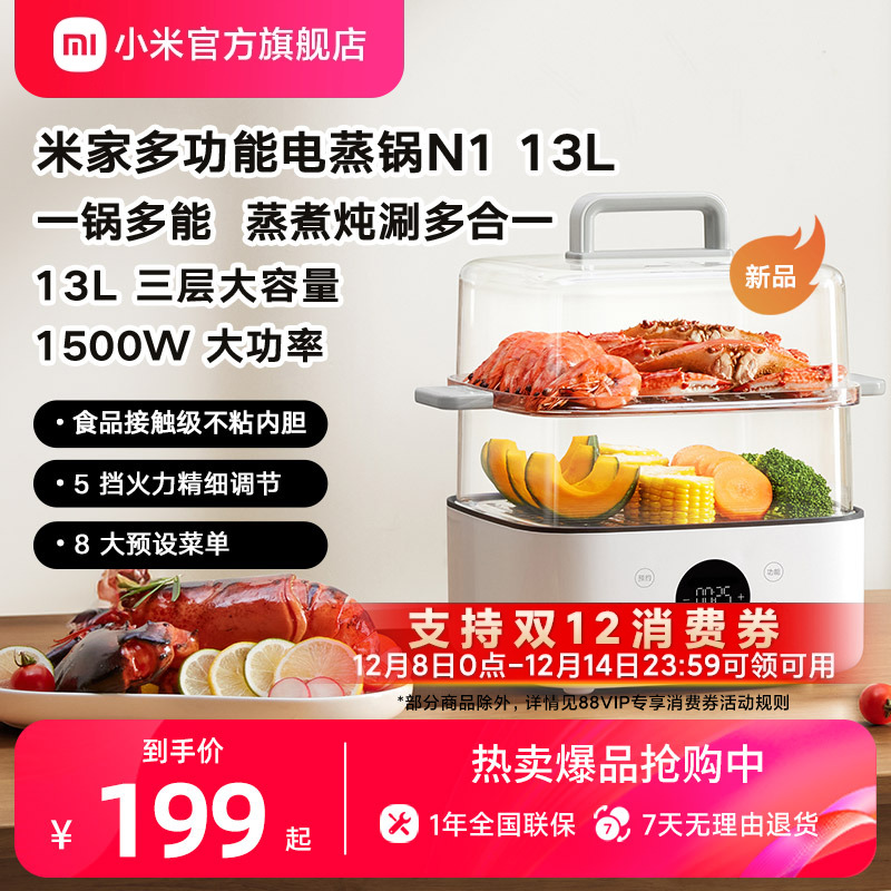 小米官旗米家电蒸锅13L早餐机电煮锅电火锅多功能锅家用大容量