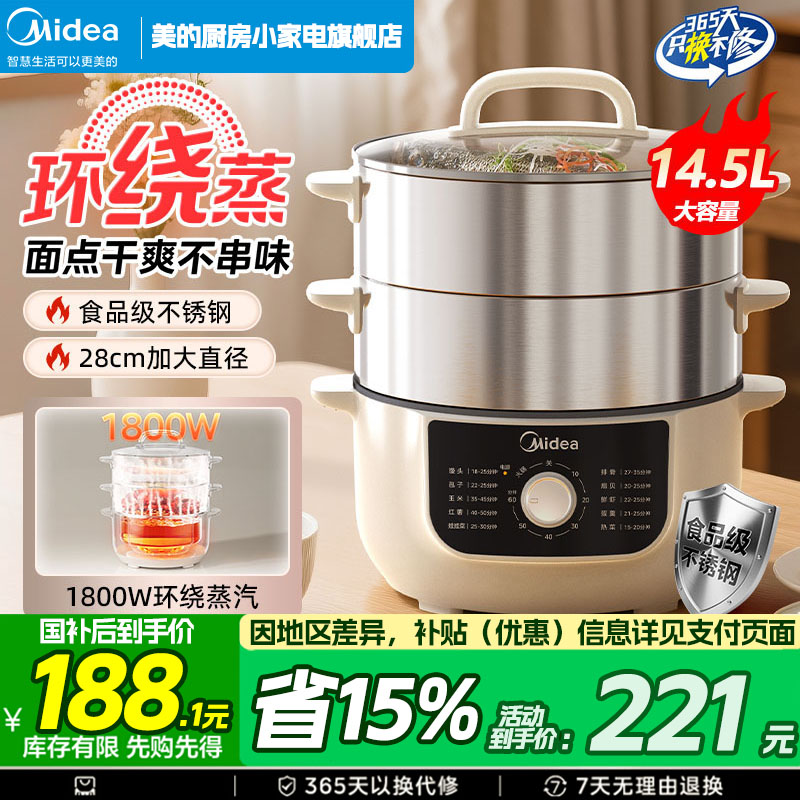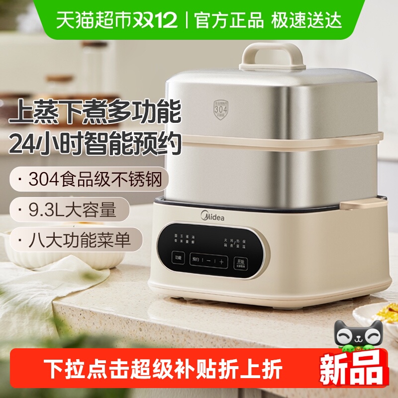 美的新款电蒸锅家用三层不锈钢电锅大容量可预约多功能蒸煮一体锅