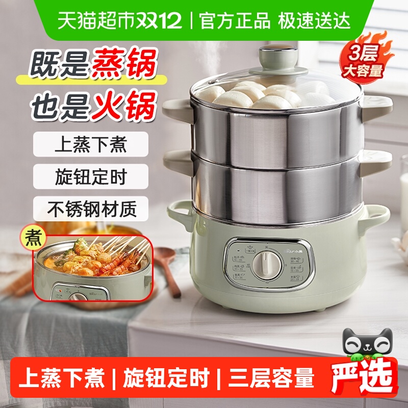 小熊电蒸锅不锈钢蒸锅家用小型三层蒸煮炖多功能一体锅多层蒸汽锅