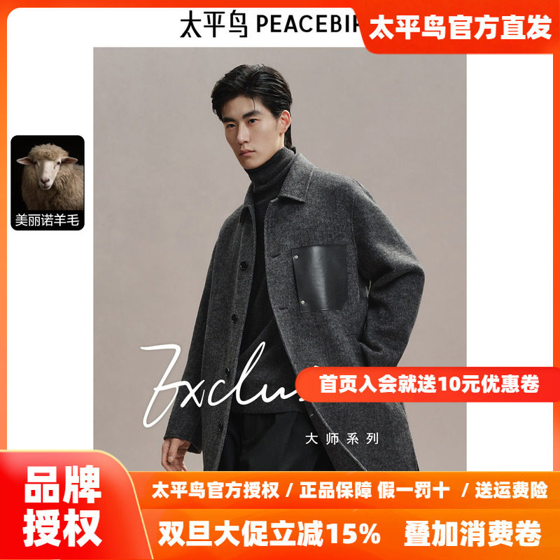 太平鸟男装2025年冬季新款中长款绵羊毛呢大衣外套B1AAD4209