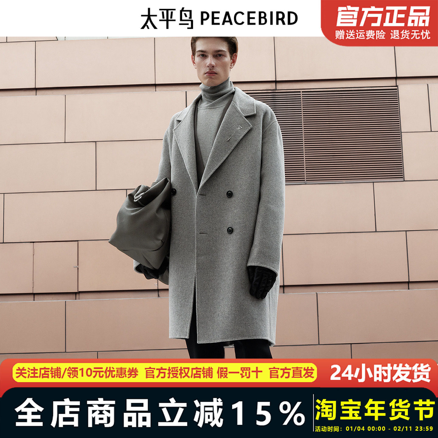 太平鸟男装秋冬季新款羊毛大衣宽松中长款毛呢风衣精英范大师系列