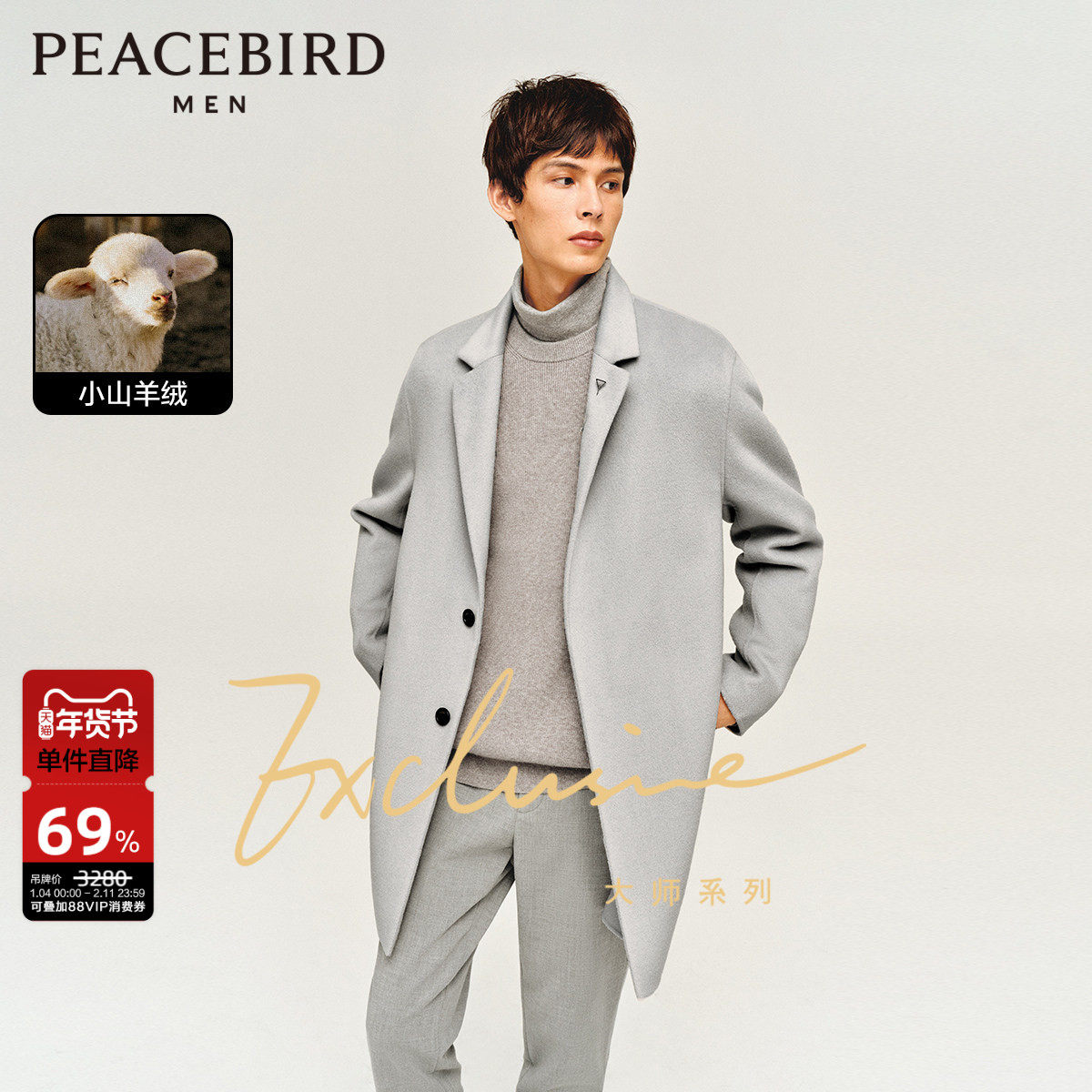【王鹤棣甄选】太平鸟男装西装领绵羊毛大衣冬新款中长款毛呢外套