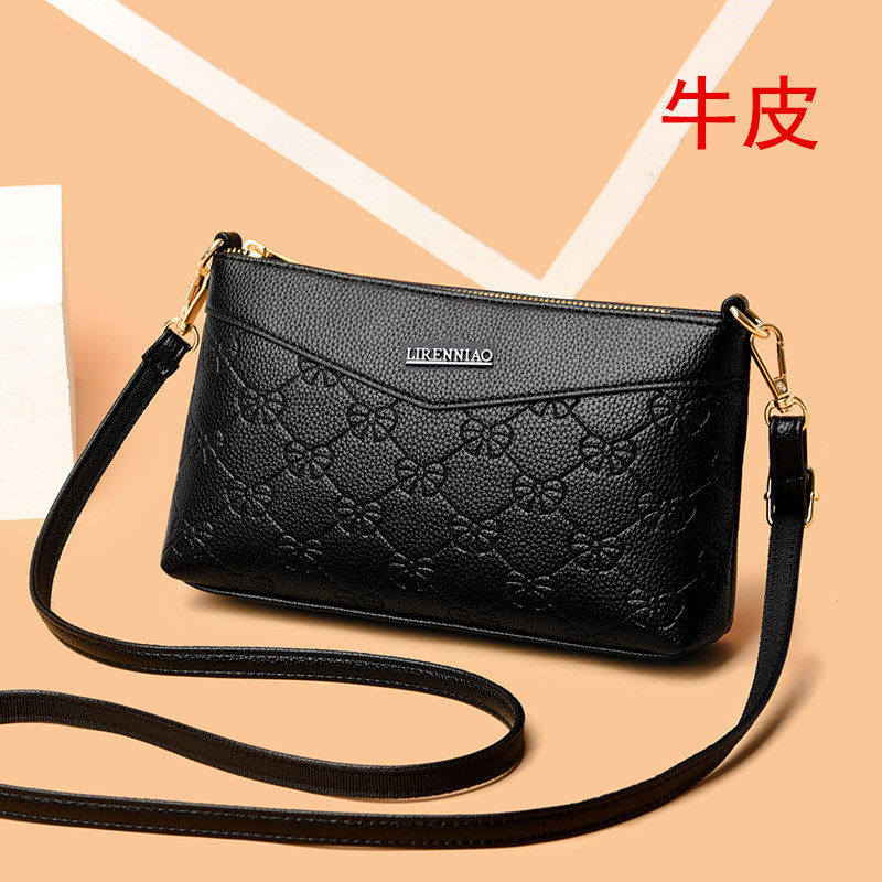 正品真皮小包女2024冬新款百搭牛皮斜挎包中老年单肩包软皮妈妈包