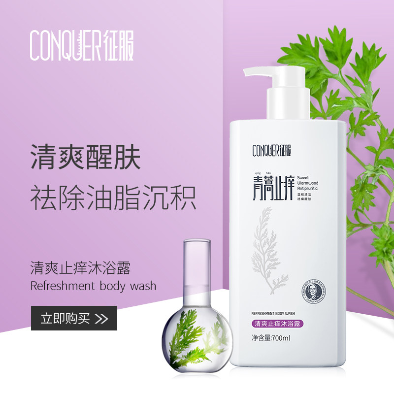 征服润肤止痒沐浴露持久留香青蒿止痒除螨男女润肤保湿清爽沐浴液