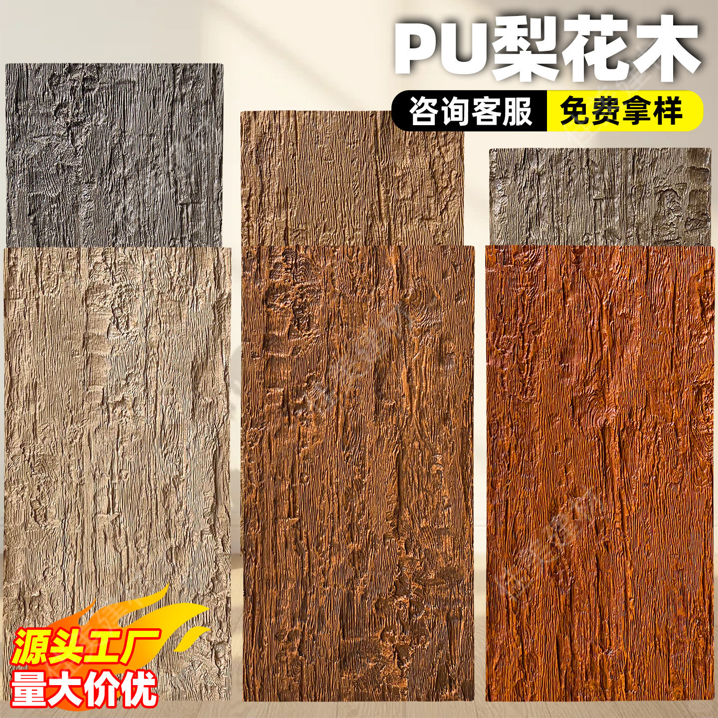 pu假梁木仿真木纹砖包柱子pu仿木板风化木老榆木背景墙外墙装饰板