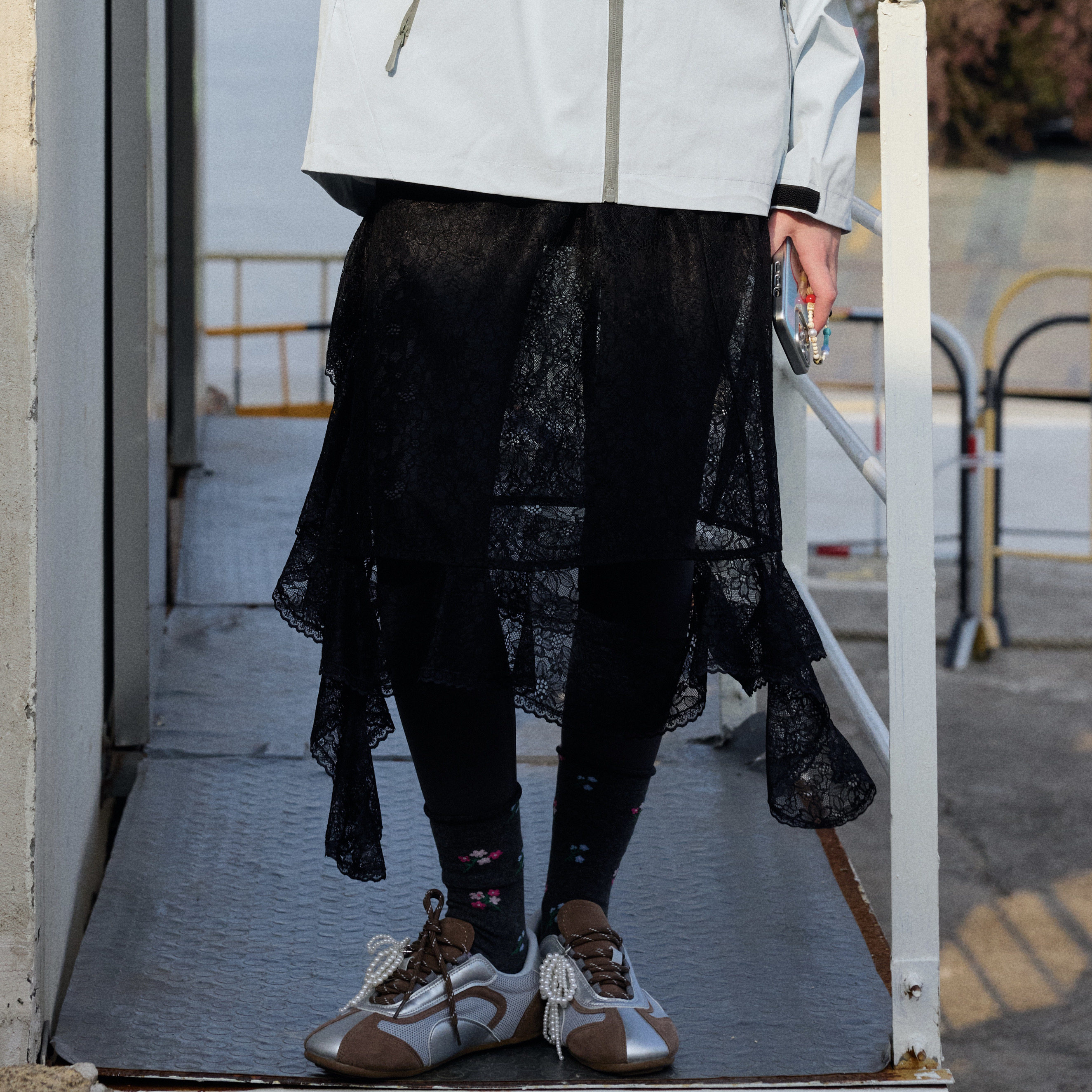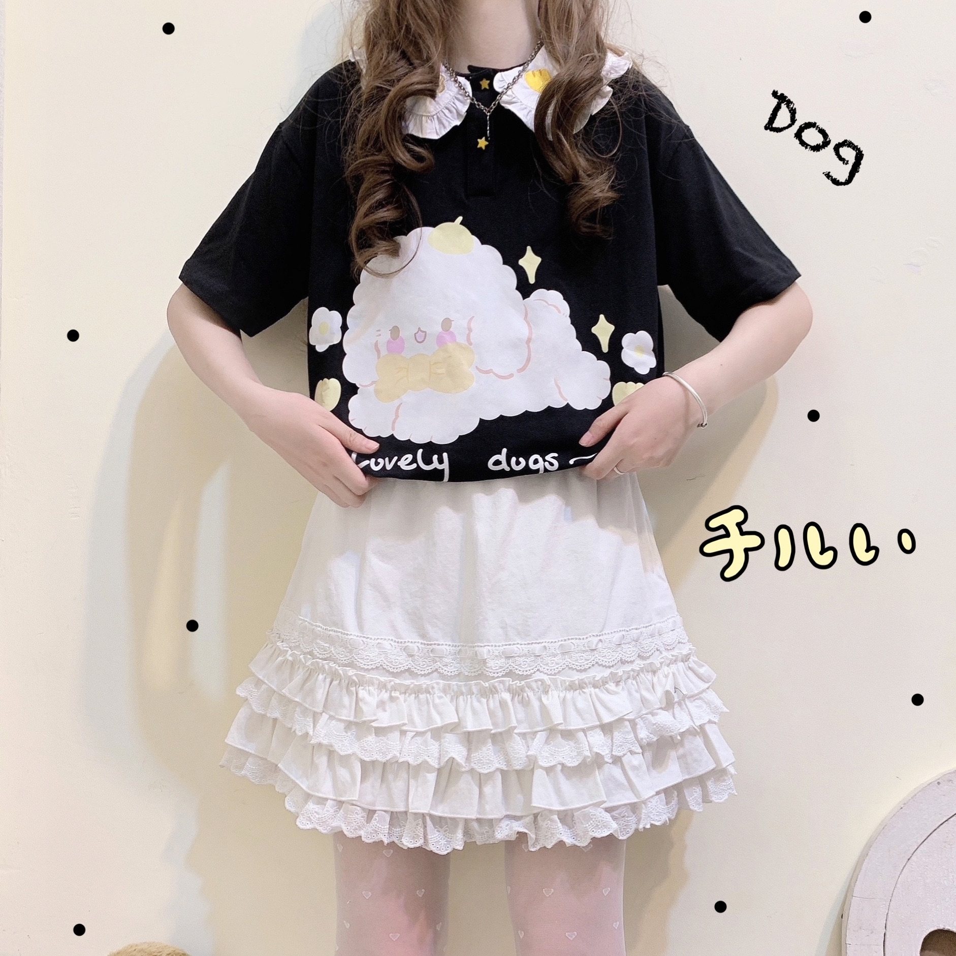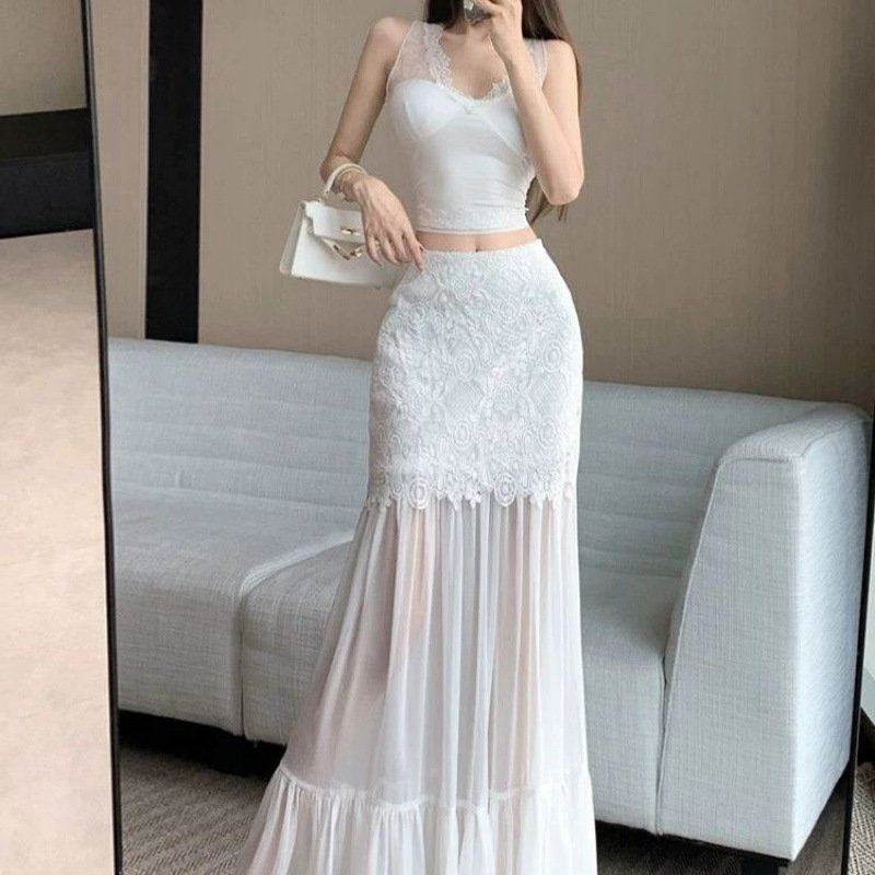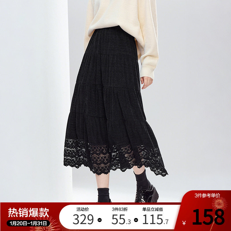 - 蕾丝百褶半身裙