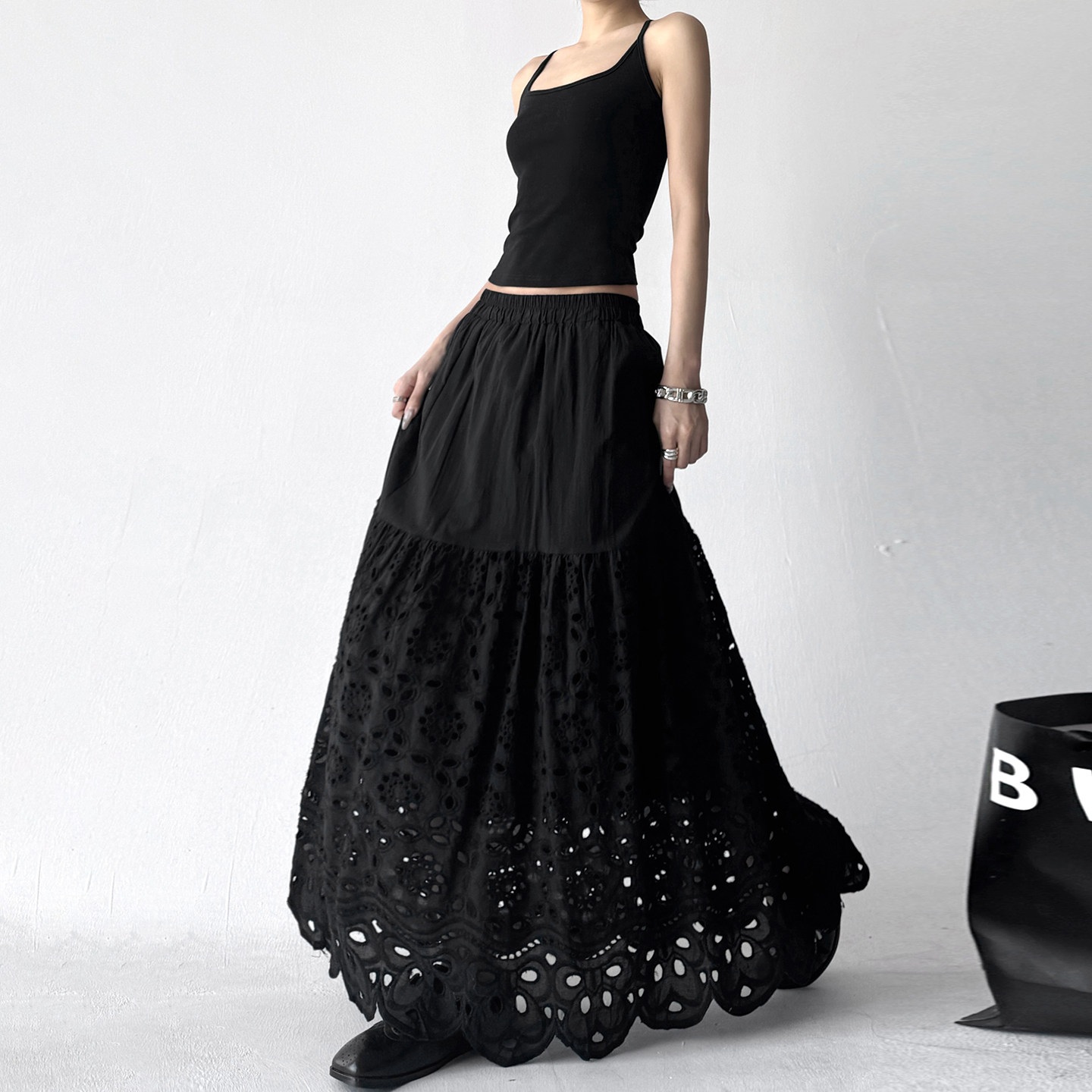 - 秋冬黑色长裙半身裙