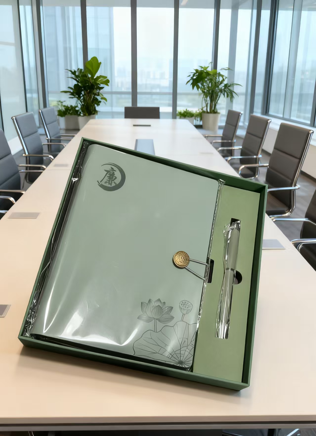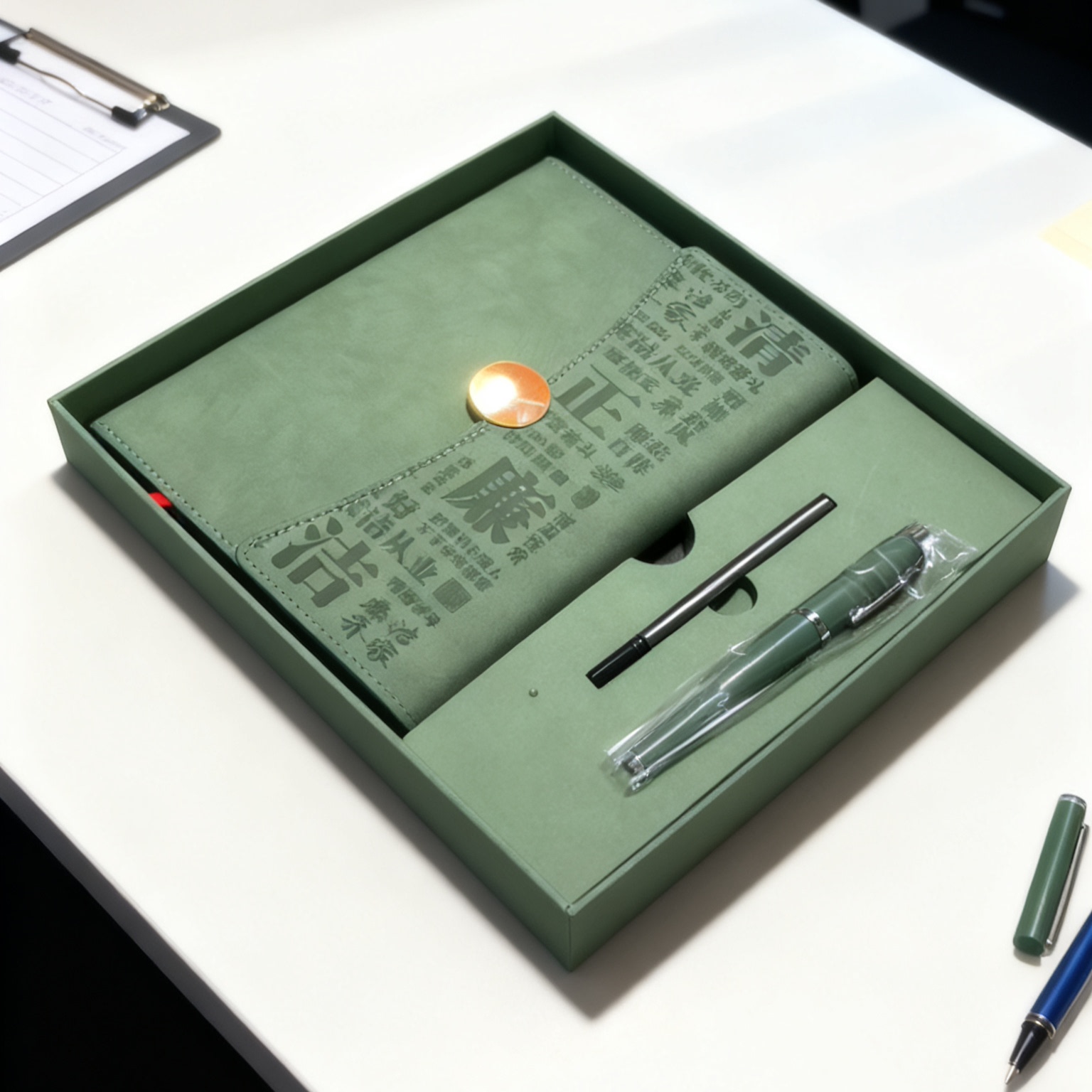 廉洁笔记本复古绿色兰色活页三折皮记事本礼盒装钢笔套装商务办公笔记本定制LOGO