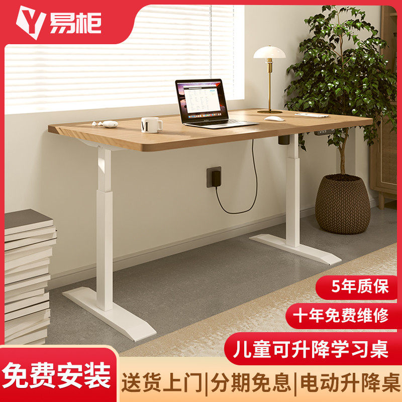 实木升降电脑桌台式家用办公桌卧室简易儿童学习桌写字桌子工作台