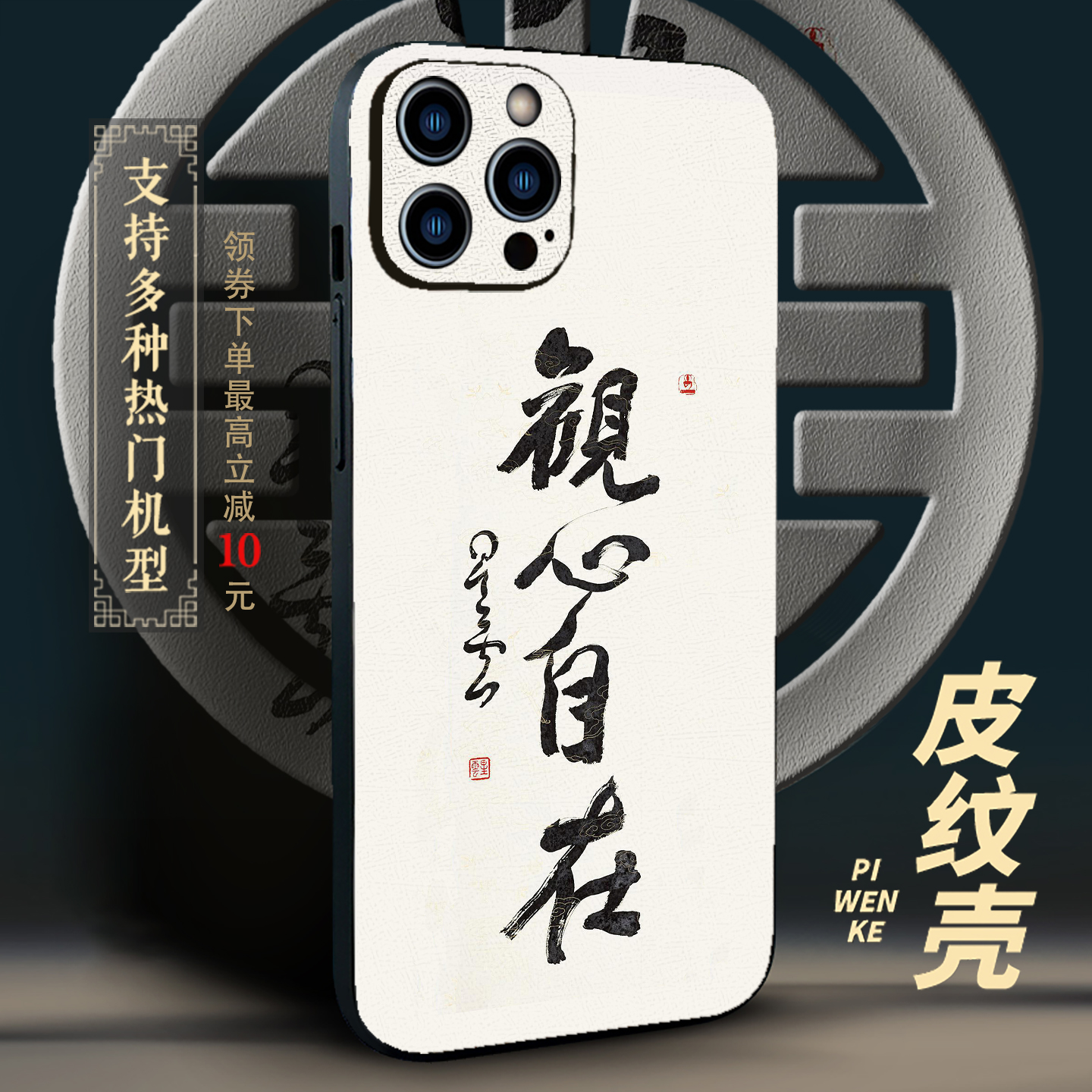 心无挂碍书法手机壳禅意适用iPhone13苹果15三星vivo红米note13小米14魅族16一加ace5佛系观心自在国风保护套