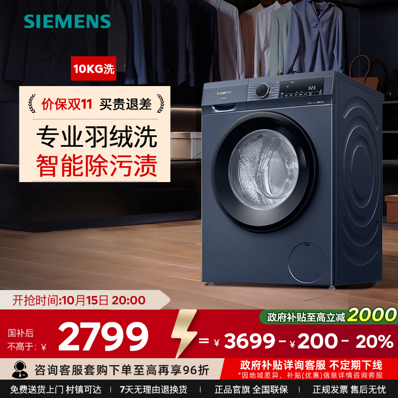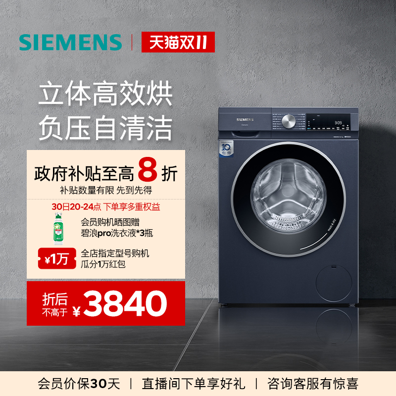【政府补贴20%】西门子10公斤滚筒洗衣机家用全自动1U101U801U00