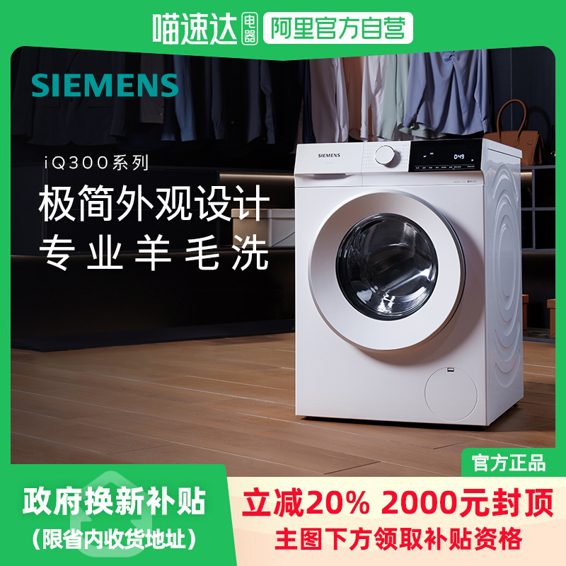 西门子10KG官方滚筒家用全自动iQ300蒸汽除菌平嵌变频洗衣机