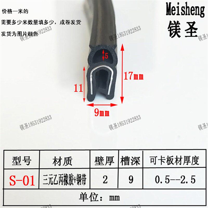 通用型内带钢片U顶泡密封条汽车车门隔音条机箱机柜配电箱密封条