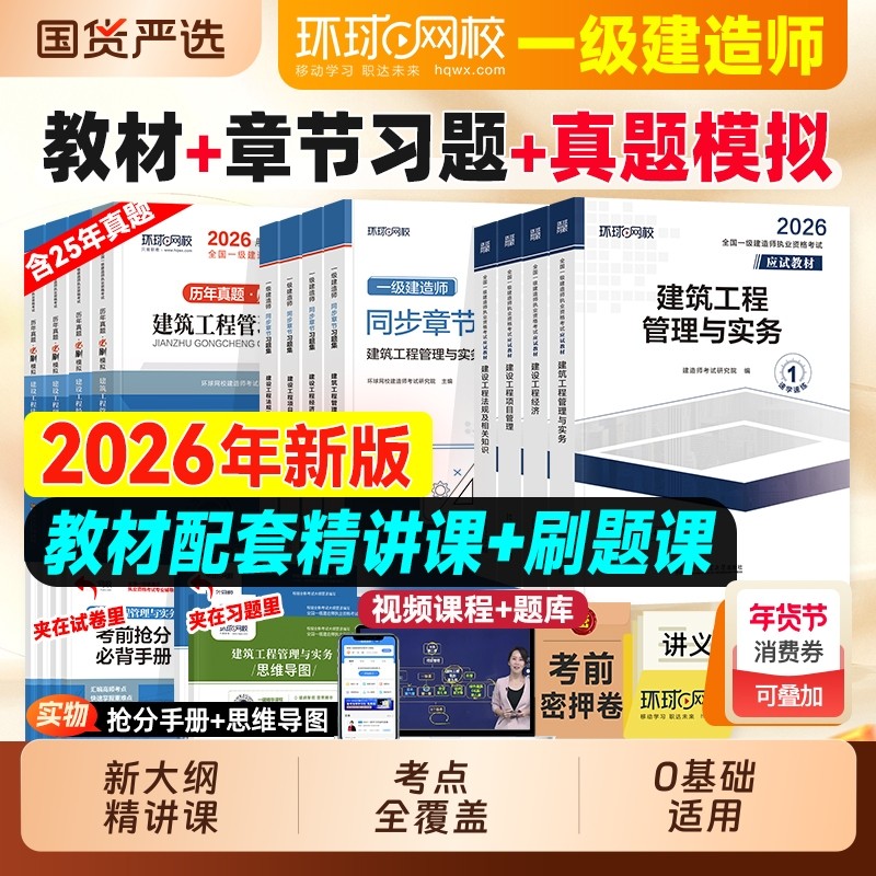 环球网校新版2026一级建造师教材书历年真题试卷全套一建房建筑土建市政机电公路水利铁路通信工程管理实务模拟考试题库习题集2025