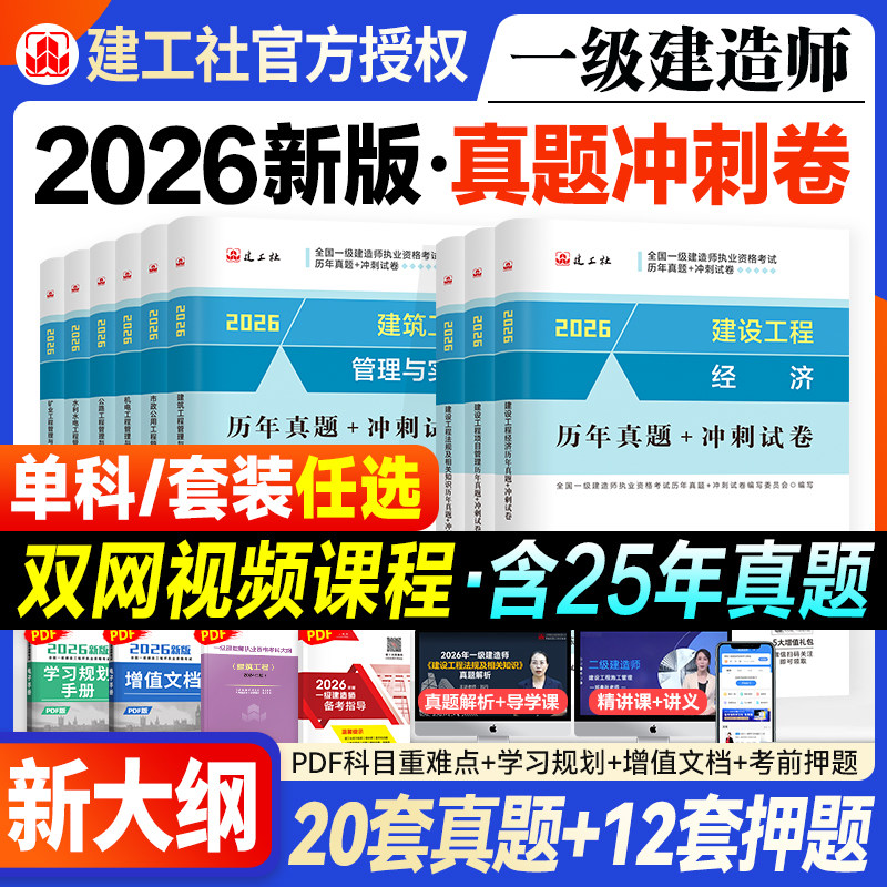 建工社官方 一建教材2026年建筑网课真题试卷 一级建造师教材网课 建筑机电市政公路水利优路教育书课包课件复习题集题库